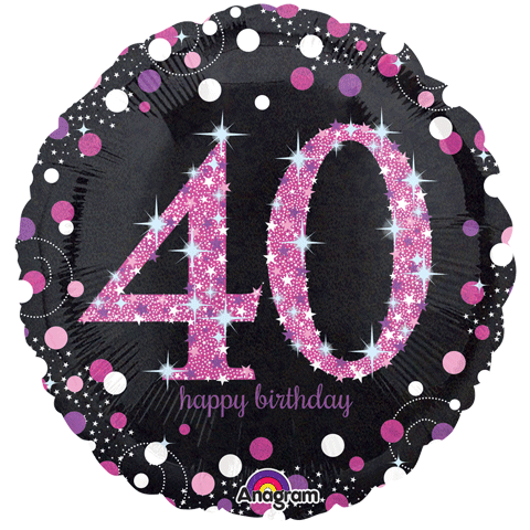 18" Pembe Siyah Pırıltılı 40 Yaş Balon 43cm