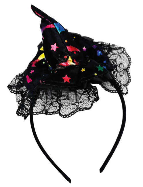 Halloween Aksesuar Taç Mini Cadı Şapkası Tüllü Renkli