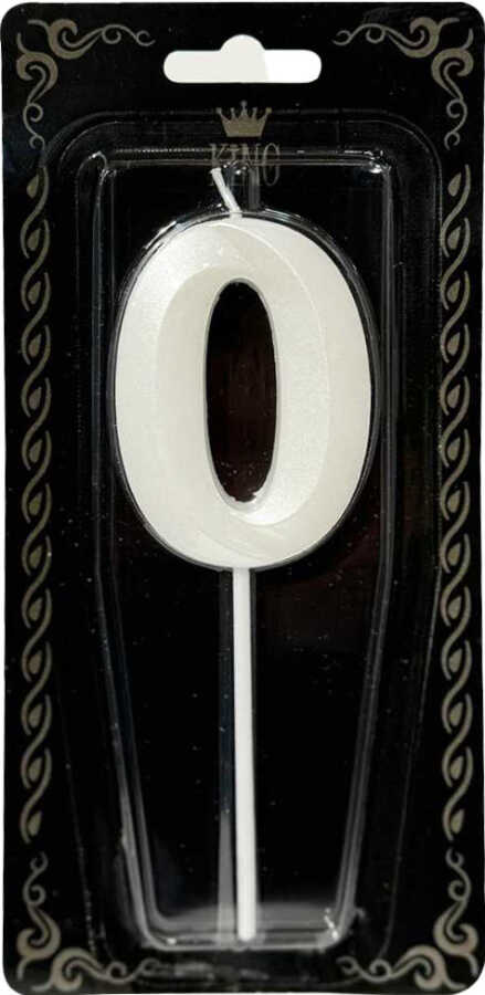 İnci Beyazı 0 Rakamı Dalga Efektli Mum 7cm