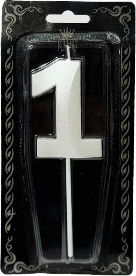 İnci Beyazı 1 Rakamı Dalga Efektli Mum 7cm